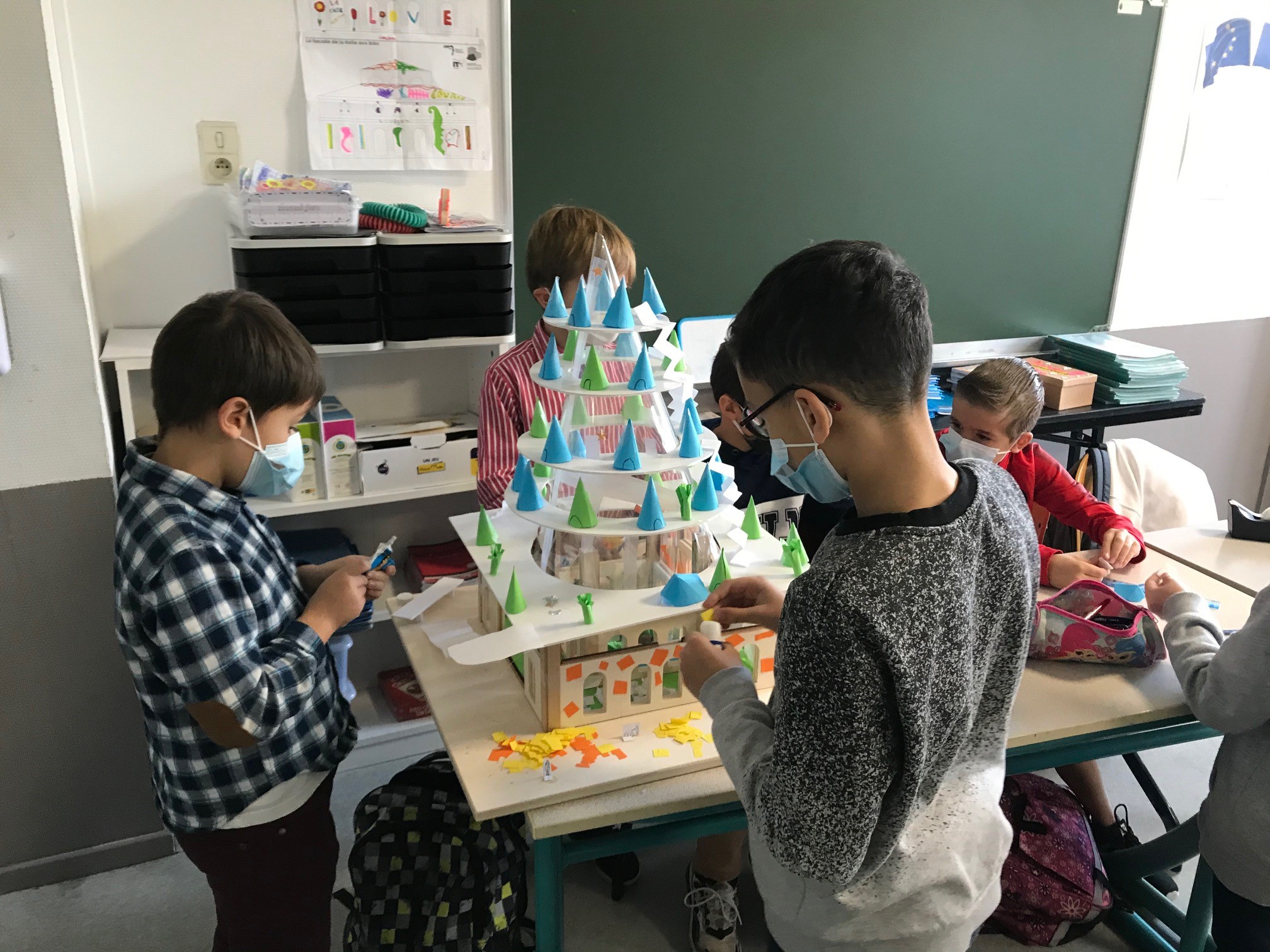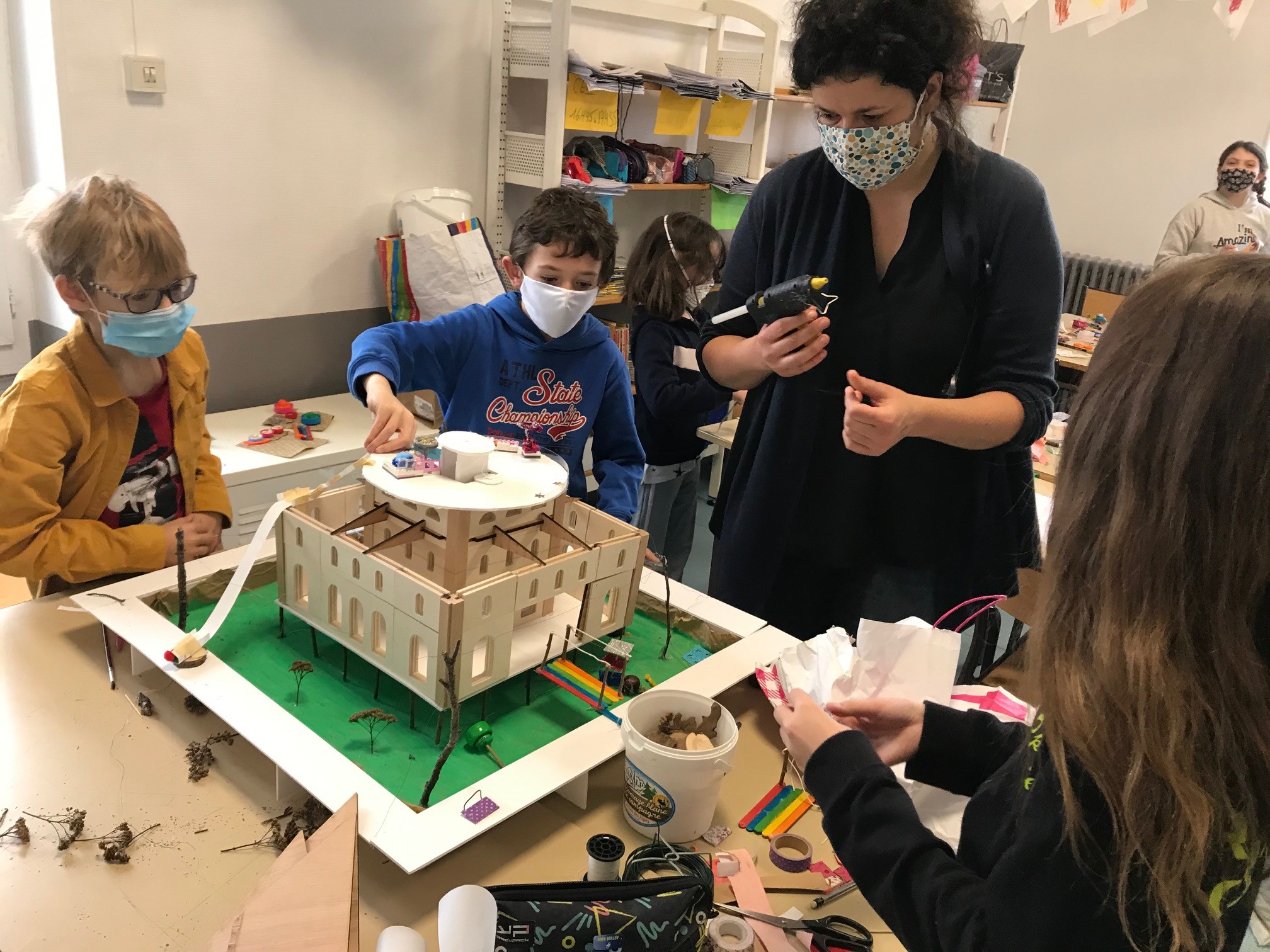 En ce début d’année, certains établissements ont bénéficié de reports d’interventions suite à des ateliers n’ayant pu être réalisé entre mars et juin 2020, alors que d’autres ont pu participer à des projets spécifiques avec des partenaires extérieurs (comme la Maison de l’architecture et la DAAC). Ainsi, certaines classes des établissements St Thècle et St Thérèse les Cordeliers ont travaillé sur 4 demi-journées avec un architecte autour de la réalisation de maquettes suite à la réhabilitation de l’ancienne Halle aux blés de Clermont-fd (futur FRAC) et dans le cadre de la cinquième biennale du Réseau national des Maisons de l’architecture. Une exposition de ces réalisations se fera dès que le contexte le permettra dans ce nouveau lieu culturel clermontois.